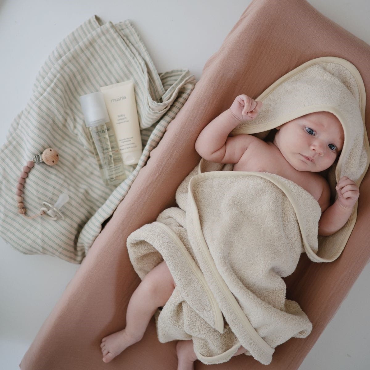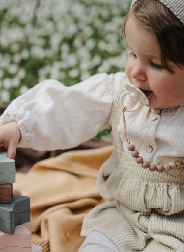The Mushie pacifier clip is not only practical but also beautifully designed in soft, natural tones. This way, your little one's favorite pacifier always stays within reach, stylishly and securely attached to their clothing.