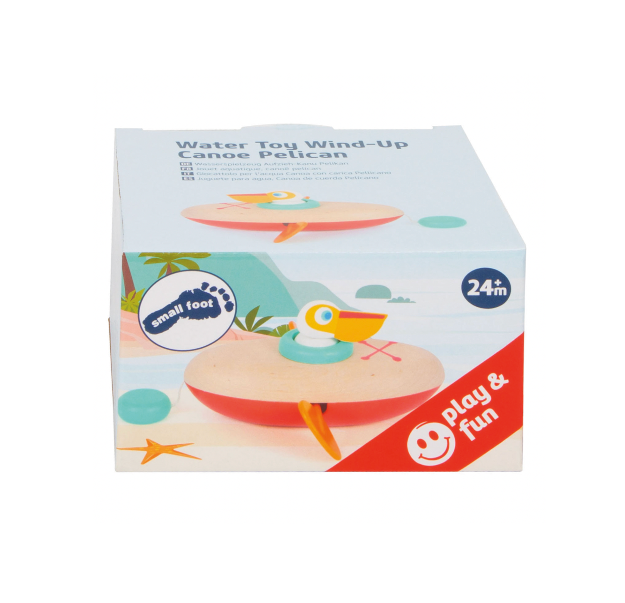 Dit houten badspeeltje met een vrolijke pelikaan nodigt uit tot spelenderwijs ontdekken in bad. De kano is voorzien van een eenvoudig opwindmechanisme waarmee de peddels automatisch gaan draaien zodra het speelgoed in het water ligt. Dat maakt badtijd speels, voorspelbaar en leuk, zonder overprikkeling.