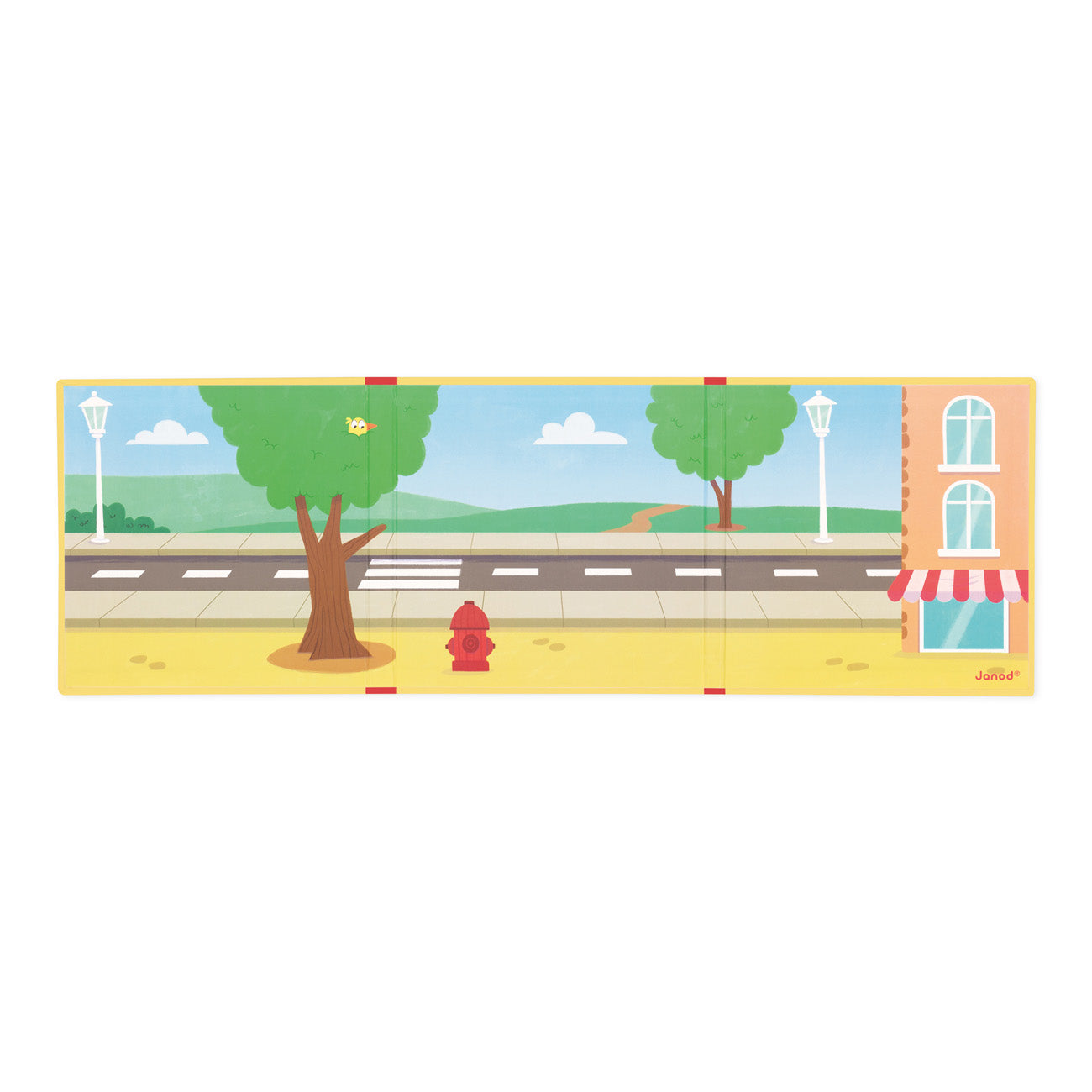 Ontdek de wereld van de brandweer met dit magnetische verhalenboek van Janod®. Het stevige kartonnen boek bevat een groot decor en 30 magneten in brandweerthema. Kinderen kunnen eindeloos scènes bouwen en reddingsacties verzinnen — thuis én onderweg.