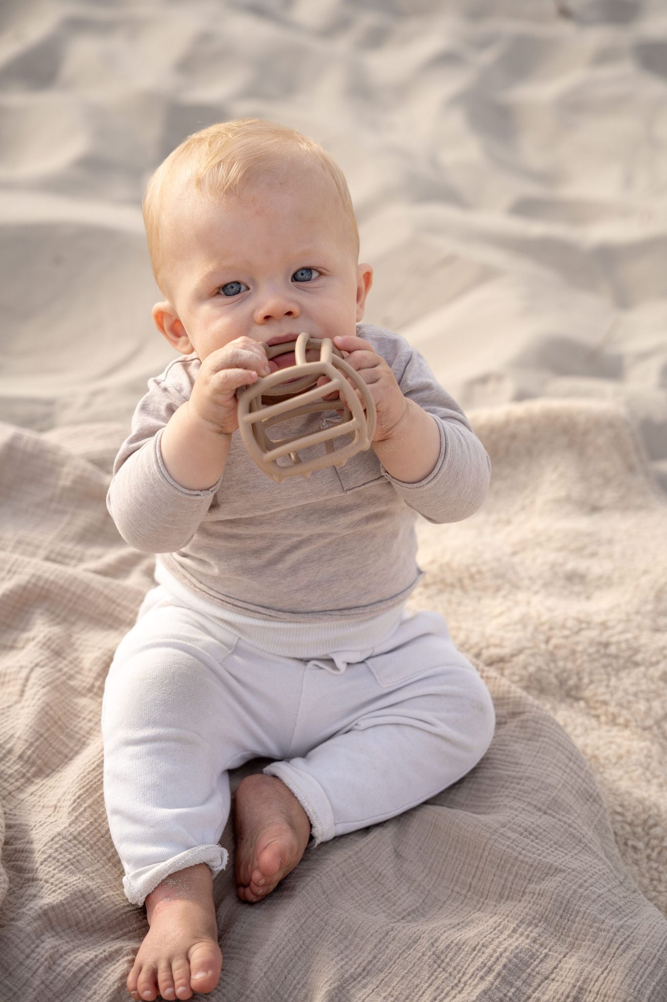 Deze stevige maar flexibele siliconen bal is een echte must-have voor baby’s vanaf ongeveer 3 maanden. Dankzij het lichte gewicht en de open structuur is de bal makkelijk vast te pakken met kleine handjes. Het materiaal nodigt uit tot grijpen, voelen én sabbelen en is ideaal bij doorkomende tandjes.