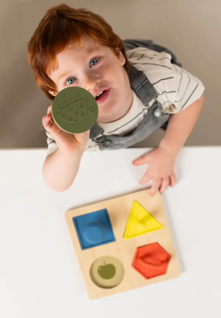 De My 1st Shapes Puzzle van Taf Toys is een uitnodigende, eerste vormenpuzzel met 4 zachte siliconen vormen en een stevig houten bord. Perfect voor nieuwsgierige peuters die vormen, kleuren en texturen willen ontdekken. De vormen hebben elk een uniek handvat, waardoor kleine handjes ze gemakkelijk kunnen vastpakken. De vormen kunnen bovendien ook als stempel of losse speelsensorische materialen gebruikt worden, wat dit speelgoed extra veelzijdig maakt.